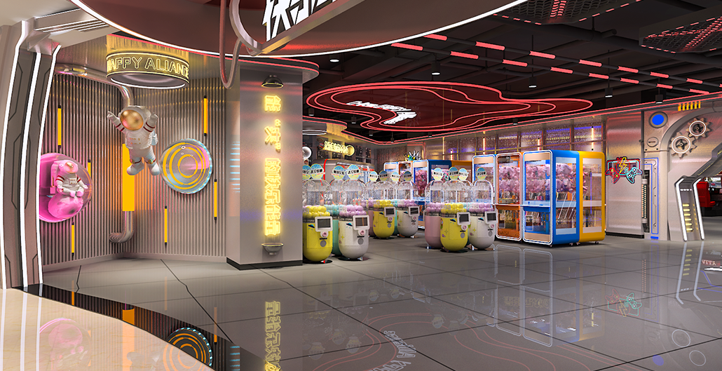 王府井快樂聯(lián)盟潮玩基地運用異于傳統(tǒng)電子游藝場所構(gòu)建的方式方法,設(shè)計師重新探討了電玩娛樂空間的藝術(shù)美感,以飽具未來感的建筑設(shè)計語言解讀其形態(tài)結(jié)構(gòu),打造了一場酷炫電玩派對。